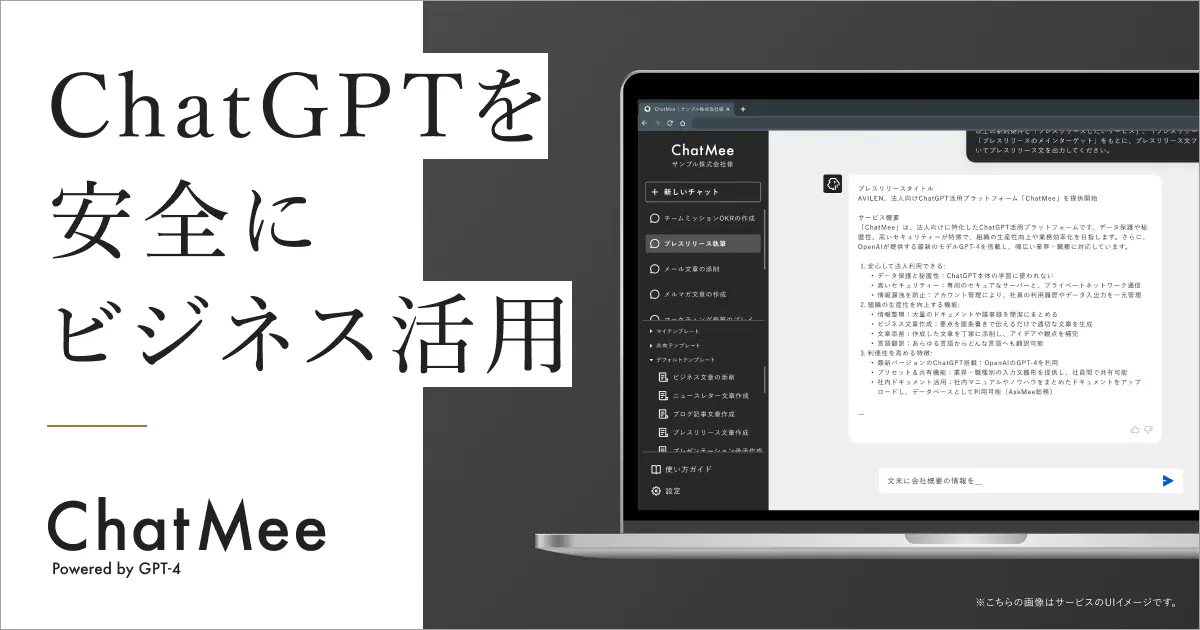 ChatMeeは、AVILENが開発した法人向け生成AI活用ツールです。