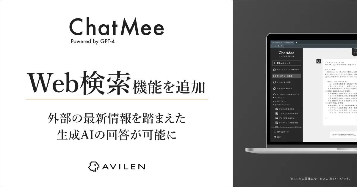 AVILENの生成AI活用ツール「ChatMee」にWeb検索機能を追加~最新情報を踏まえた生成AIの回答を実現し、業務効率と情報精度を同時に向上~